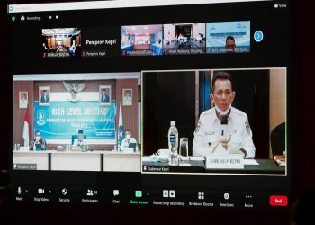 Walikota Tanjungpinang, Rahma saat menyanyikan Lagu Kebangsaan Indonesia Raya sebelum memulai Rakor dengan KPK, f :...