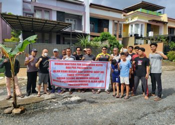 Warga saat menanam pohon dijalan berlubang, foto: doc.detak.media DM - Warga Perumahan Mahkota Alam Raya, Jalan ...