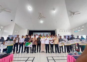 Gubernur Kepri Ansar Ahmad, saat foto bersama masyarakat seusai penyerahan berbagai bantuan, foto: ist/detak.media DM – ...