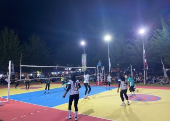 Suasana pertandingan bola voli putri U-23 Piala Gubernur Kepri Zona Natuna, berjalan dengan lancar dan meriah, ...