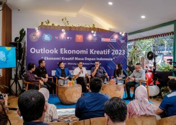 Menparekraf, Sandiaga Salahuddin Uno, dalam diskusi "Outlook Ekonomi 2023" yang digelar oleh Gekraf di Warung Saco ...