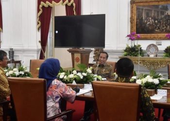Presiden Joko Widodo saat menerima kedatangan anggota Dewan Pers periode 2022-2025 di Istana Merdeka, Jakarta Pusat, ...