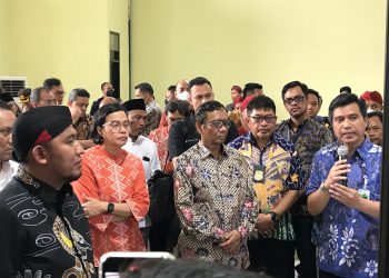 Menteri Keuangan (Menkeu) Sri Mulyani Indrawati bersama Menteri Koordinator Bidang Politik, Hukum, dan Keamanan (Menkopolhukam) Mahfud ...