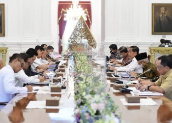 Presiden Joko Widodo dan sejumlah menteri saat rapat terbatas di Istana Merdeka, Jakarta Pusat, Selasa (31/01/2023), ...