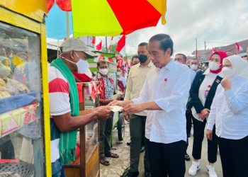 Presiden dan Ibu Iriana Jokowi mengunjungi Pasar Olilit, di Tanimbar Selatan, Kabupaten Kepulauan Tanimbar, Maluku, Jumat ...