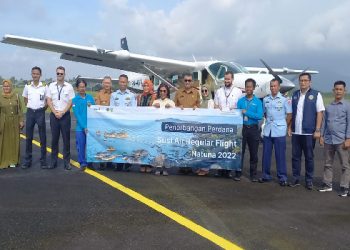 DM - Bupati Natuna, Wan Siswandi dan Wakil Bupati Natuna, Rodhial Huda menghadiri kegiatan terbang perdana Susi Air di Bandara ...