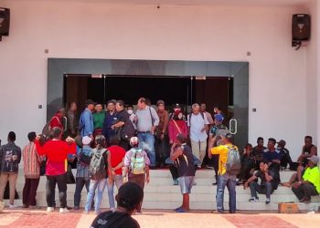 Puluhan Masyarakat Suku Laut saat di Halaman Kantor Gubernur Kepri, foto : ist DM - Lembaga ...