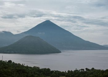 Pulau Maitara yang terletak di antara Pulau Kota Ternate dan Pulau Kota Tidore, Provinsi Maluku Utara, ...