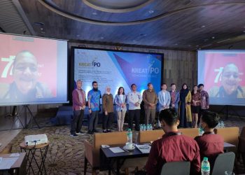 Kemenparekraf/Baparekraf Henky Manurung saat foto bersama seusai menggelar kegiatan Coaching Clinic KreatIPO di Kota Bogor, Jawa ...