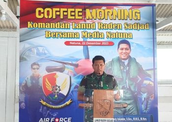 Foto bersama, seusai menggelar coffee morning bersama awak media, di Rumah Pantai Lanud RSA (foto : ...