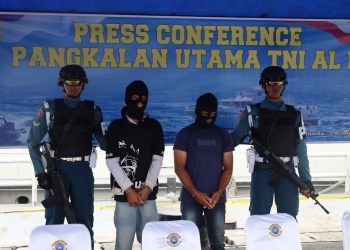 Dua pelaku penyeludupan narkoba usai diringkus Tim Gabungan Koarmada 1, foto: ist/doc.humas koarmada I DM - ...