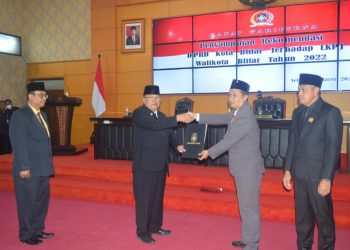 Ketua DPRD Kota Blitar dr. Syahrul (Kanan) memeberikan rekomendasi pada Walikota Blitar, foto: Dani ES/detak.media DM, ...