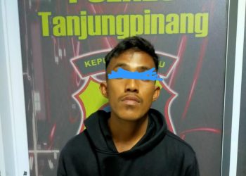 Tersangka yang diamankan Satreskrim Polresta Tanjungpiang usai menjalani pemeriksaan, foto : Mael/detak.media DM - Amrizal, seorang ...