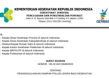 Tangkapan Layar - Surat Edaran (SE) nomor : HK.02.02/C/3628/2023 tentang Penanggulangan Dampak Polusi Udara Bagi Kesehatan., ...