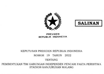 Tangkapan layar surat Keputusan Presiden Republik Indonesia (Keppres) Nomor 19 Tahun 2022 tentang Pembentukan Tim Gabungan ...